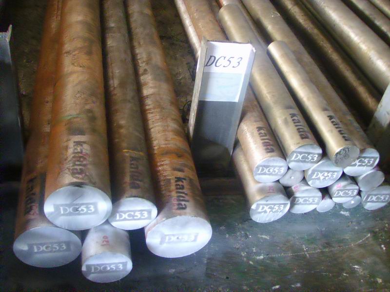 DC53鋼是日本大同特殊鋼高(gāo)鉻鋼和通用高韌性冷衝(chōng)模具鋼。該鋼經淬火,並經520~530℃高溫回火(huǒ)後硬(yìng)度可達62~63HRC,高於SKD11鋼。雖然硬度提高2~3HRC,耐磨性卻大大改善,衝(chōng)擊韌度(dù)明顯提高,是替代D2的優良鋼種。蝕花加工性能和(hé)線切(qiē)割性能良好,在強度和耐磨性方(fāng)麵超過SKD11鋼,韌度是SKD11鋼的兩倍。該鋼韌性在冷作模(mó)具鋼(gāng)中較為突出,因此用該(gāi)鋼製作的模具,很少現裂紋和崩裂,大(dà)大提高了鋼的使(shǐ)用壽命。線切割加工後的殘餘應力,經高溫回火後(hòu)得到了減(jiǎn)少。